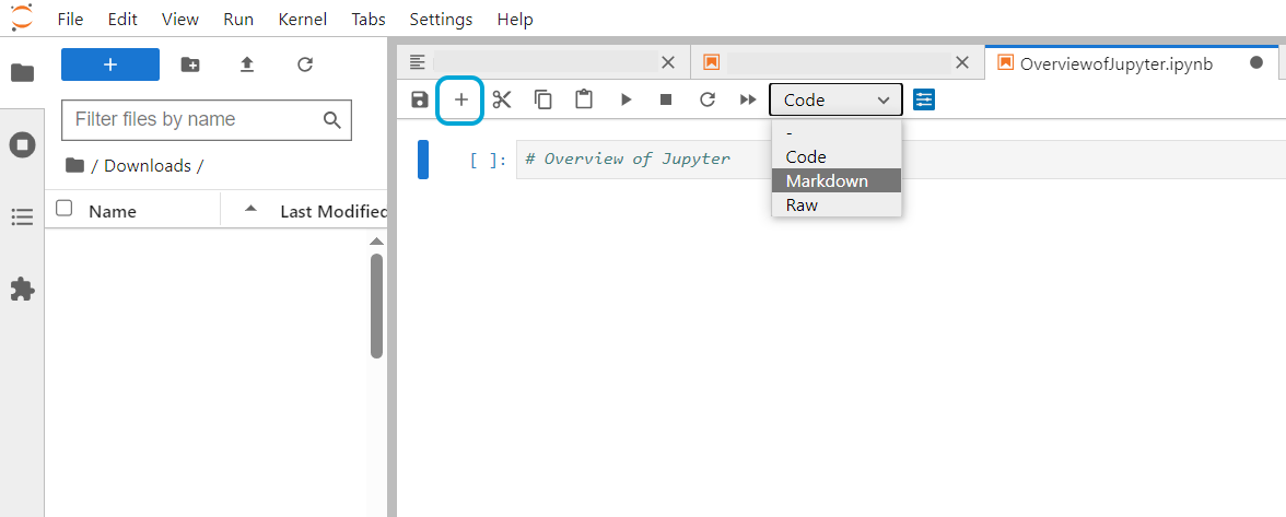 The plus button on the Jupyter Ribbon