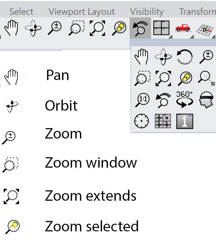 Like any other 3d software Rhino support a whole range of navigation options which enable you to navigate your scene. The most used are the navigation options of Orbiting around an object, Panning and Zoom. This can be done using the mouse and keyboard. Navigation with mouse and keyboard