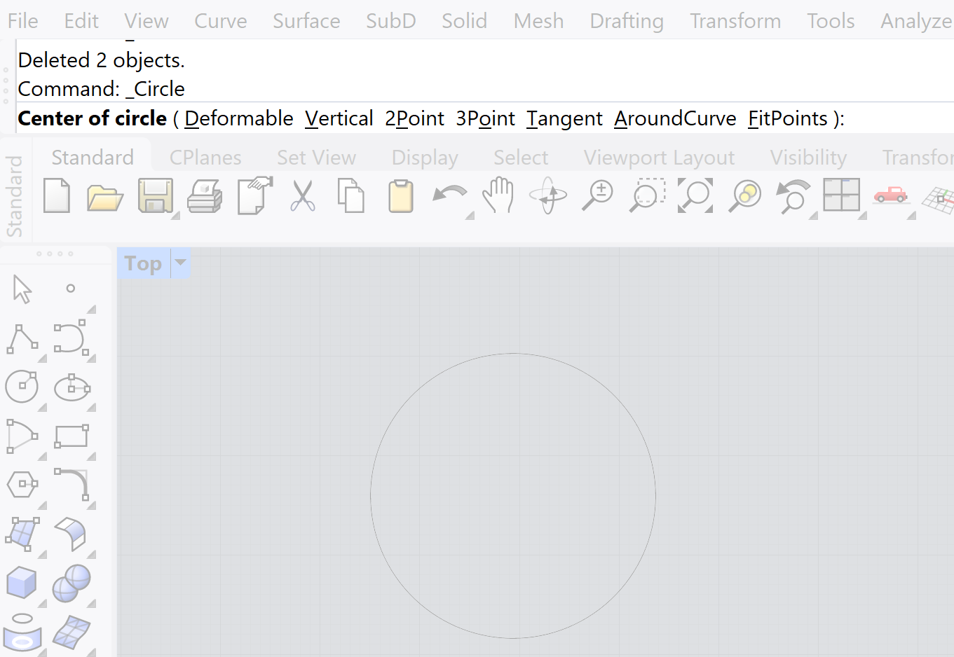 The command window shows two lines by default. To open a window that displays the command history, press F2. The text in the Command History window can be selected and copied to the Windows clipboard. The command area can be compared to the command bar of Autodesk Autocad. The command line is not only there to type in commands but is also gives you access to options of a command when you have given it.