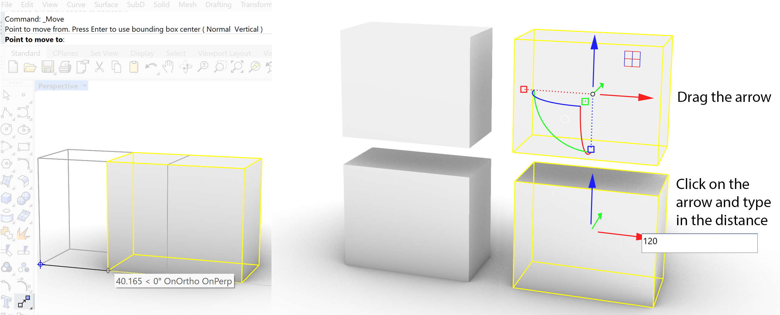 If you want accurately move, scale or rotate an object then you can use the type in option of the command line. This doesn’t only work for translations but also with drawing geometry. For example you can define each edit point on your curve by typing in the absolute ( according to the world coordinate system ) location of the next point or a relative position in relation to the last defined point.