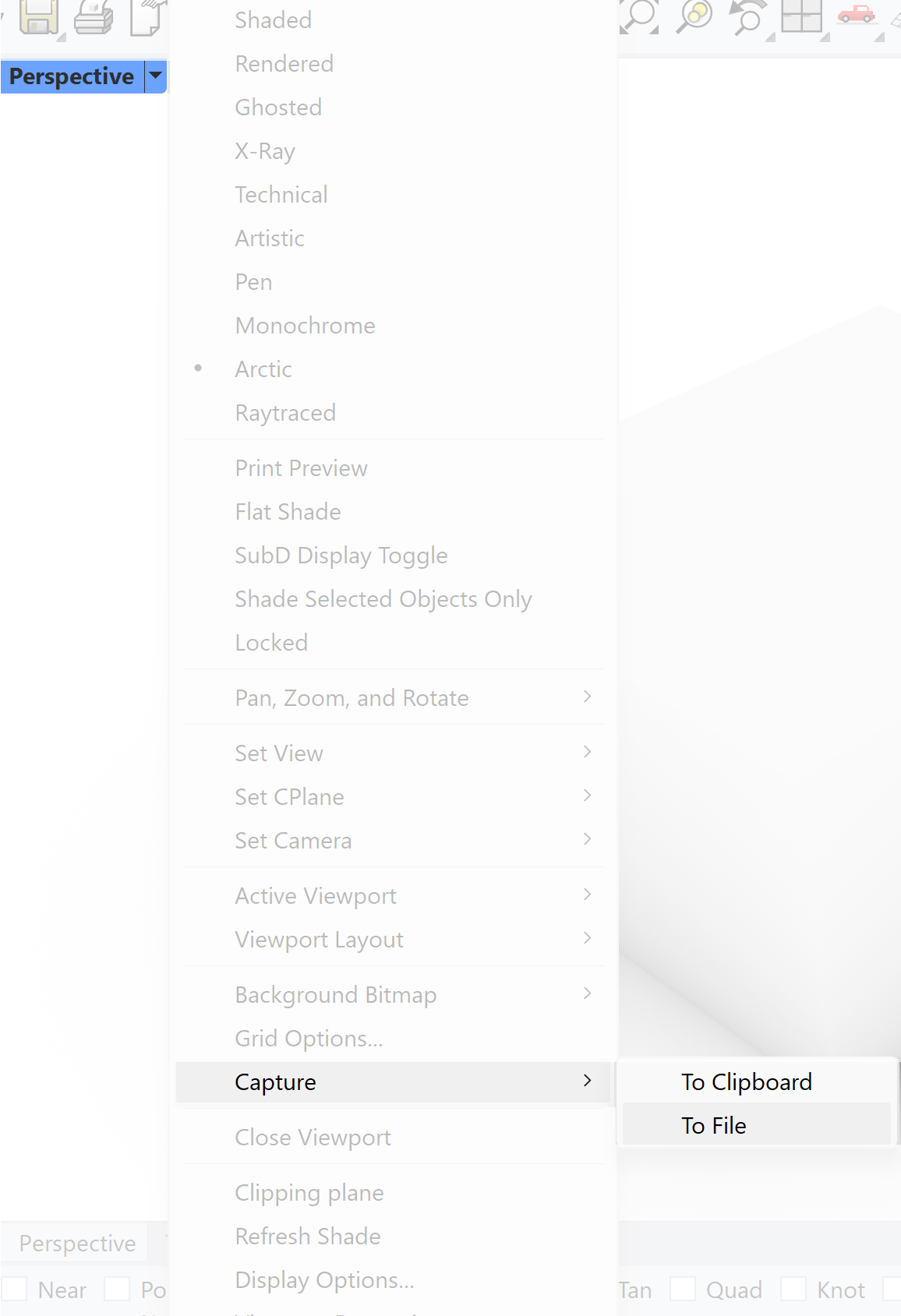 The image of the viewport can be saved by using the Viewport menu. Click on the arrow next to the viewport label to open the options of the viewport. Select: