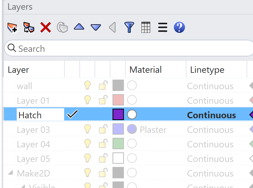 • Click twice on the name of the layer you want to convert to the hatch layer, and change its name into Hatch.