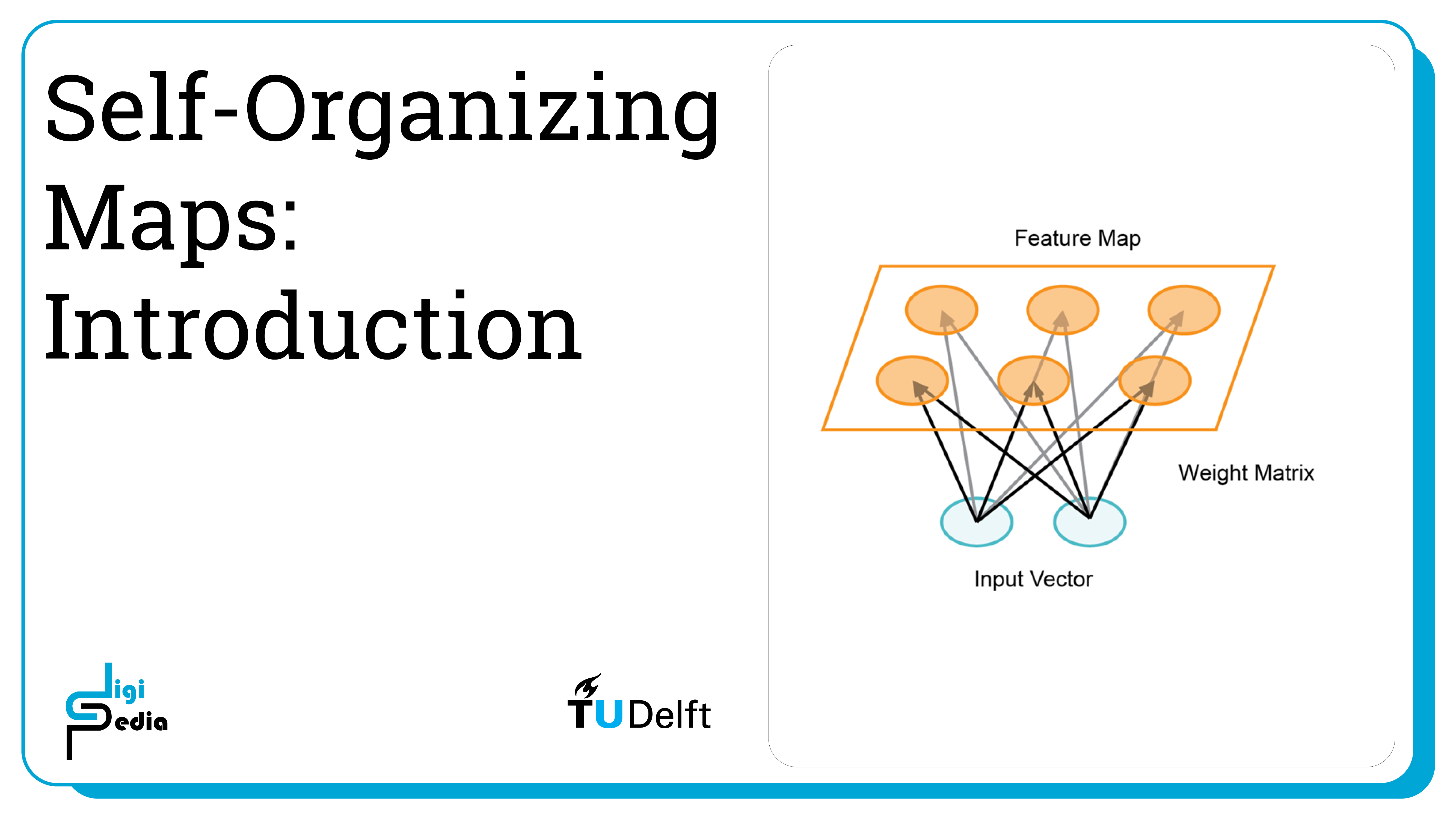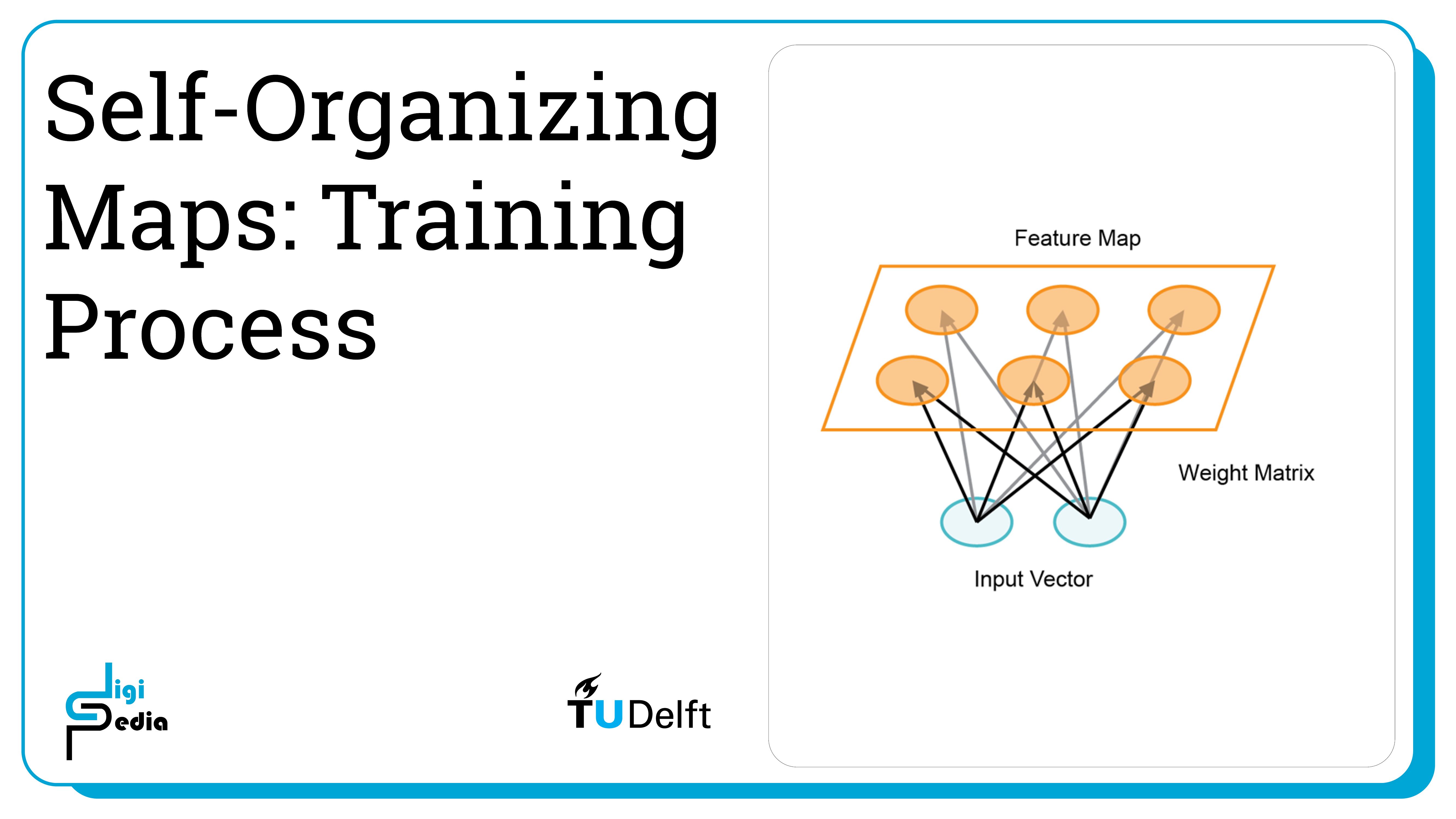 A Self Organizing Map (SOM) is a technique used for machine learning that produces a two-dimensional representation of a higher dimensional data set. The goals is to projects the data set into a lower dimension while preserving the original data structure. The data set is separated into clusters of variables with similar values which can be visualized in a map. In this way, the clusters that are near each other have more similar values than the clusters that are far away. This process makes high-dimensional data easier to visualize and also easier to analyse. A SOM is a type of artificial neural network but instead of learning from error-correction learning like backpropagation with gradient decent, it trains by using competitive learning.