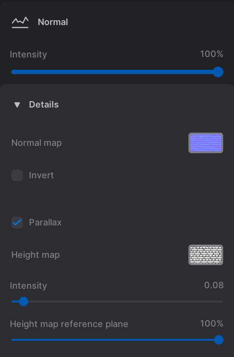 The amount of light can be changed under “Main” with the Intensity slider.