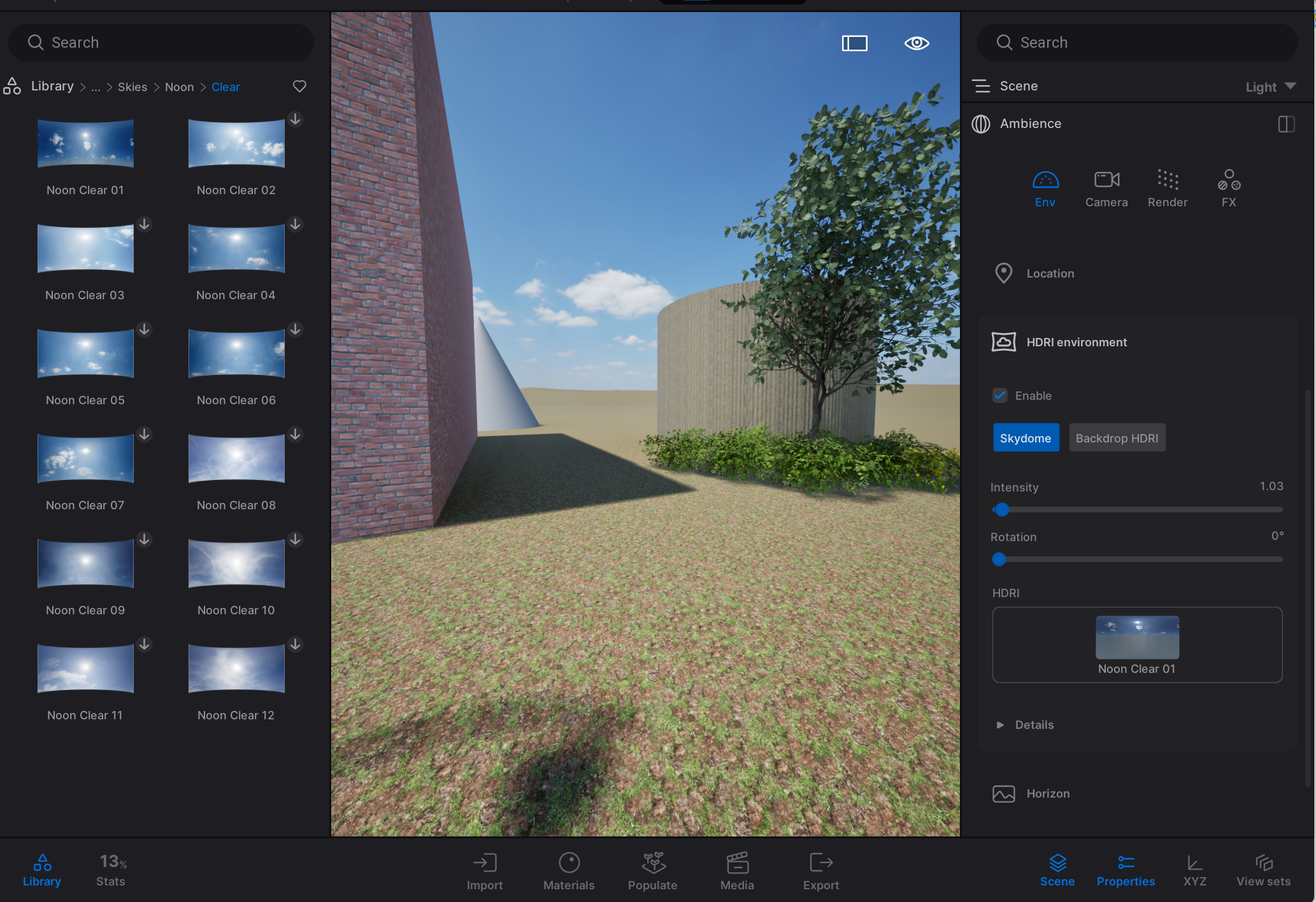 - The sky dome HDRI’s are under “skies” and only include a sky, in conterdiction to other HDRI’s that might include a forest, city or field.