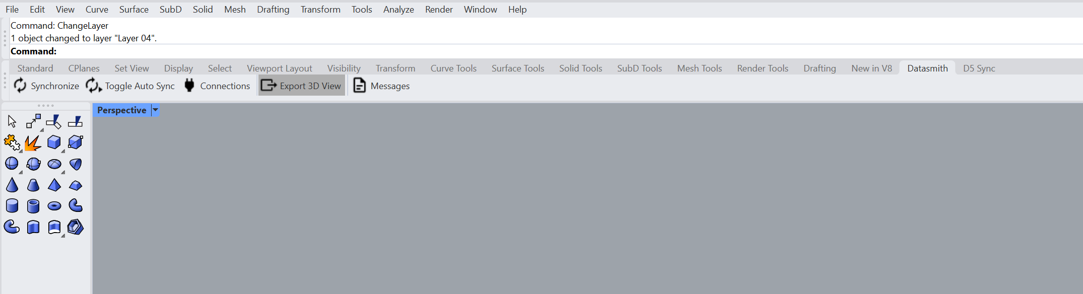 Open the Datasmith toolbar in Rhin
