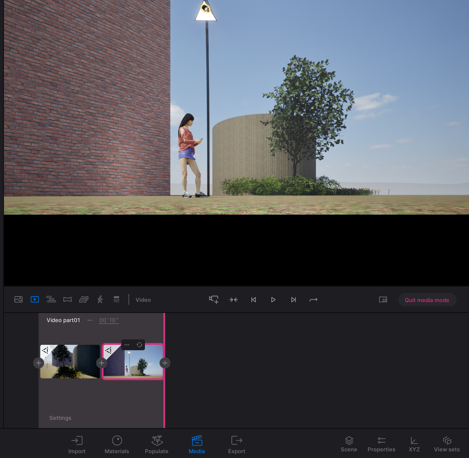 Clicking the + icon will create a video. The first frame has your current camera potion and ambience settings. If you change the camera position or ambience settings for this image, make sure to click on the “refresh” button that appears when you hover above the image that you’ve created.