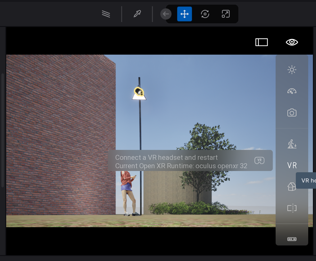 Select “VR” and put on your headset. Navigate using teleportation using your controllers.