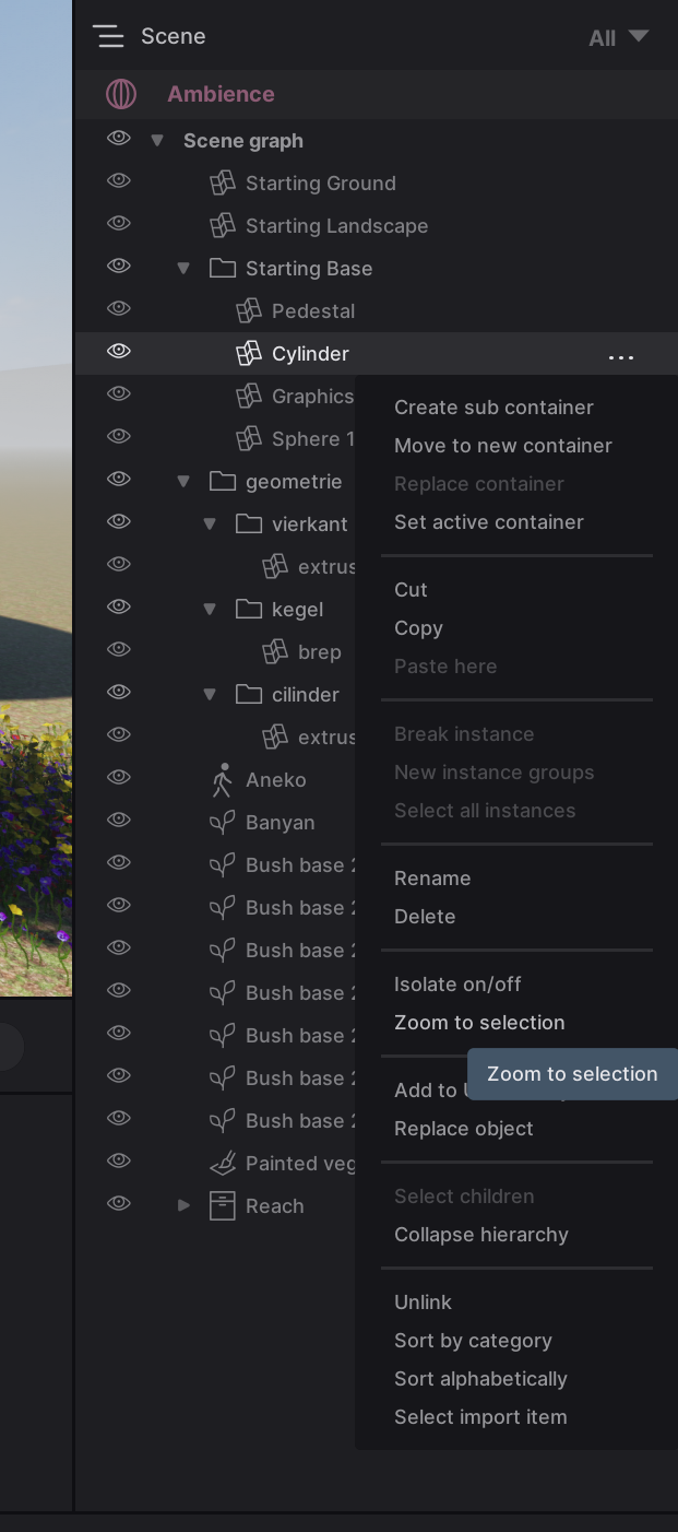 - Your geometry is too far from the origin. Your geometry should still show up in the scene graph on the right of your screen. Open this graph by clicking on “Scene” at the bottom right of your screen. You can find your geometry in the Twinmotion viewport by right clicking on a part of your geometry and selecting “Zoom to selection” in the menu that pops open.